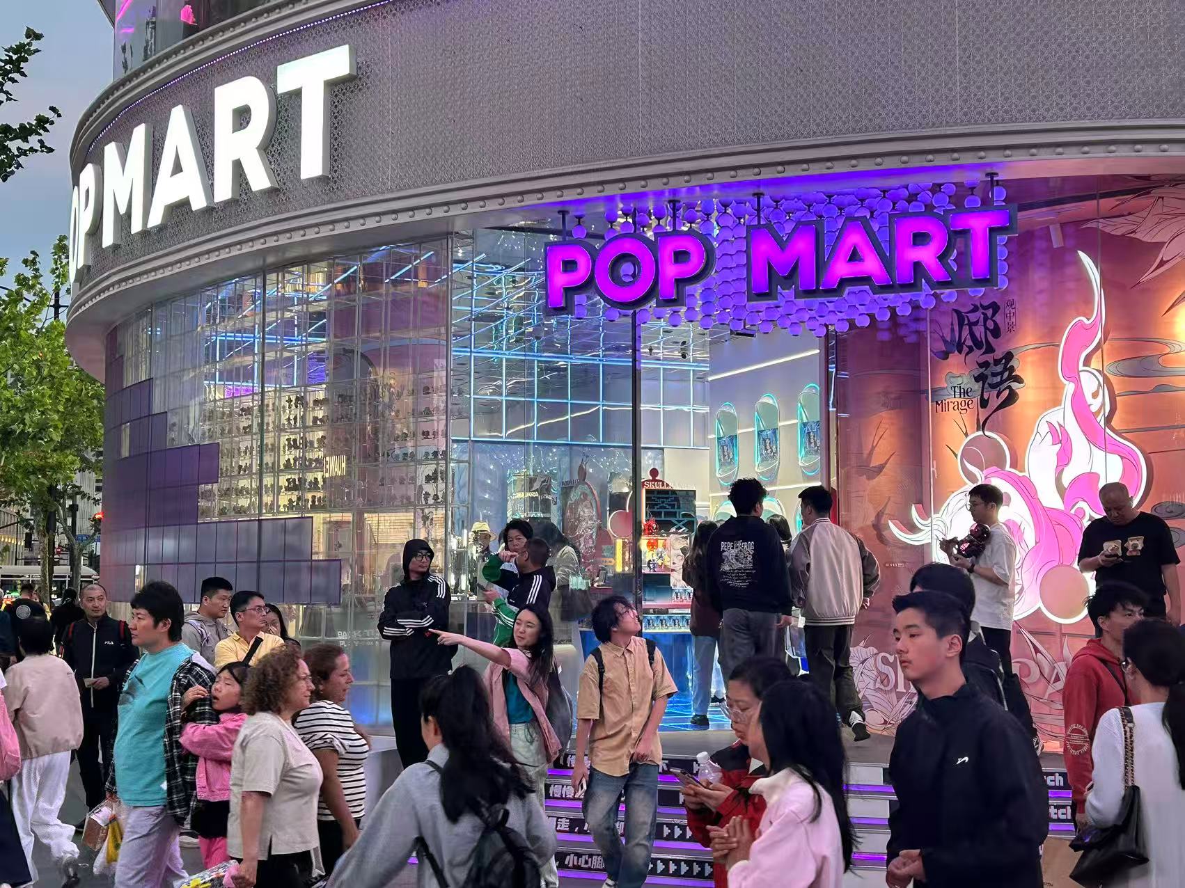 五一假期,如果来到上海南京东路,你会看到大量中外游客手上都提着三个品牌的袋子,名创优品旗下的TOP TOY、卡游和泡泡玛特——“潮玩消费”成为了这个五一小长假的亮点。